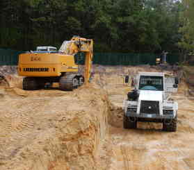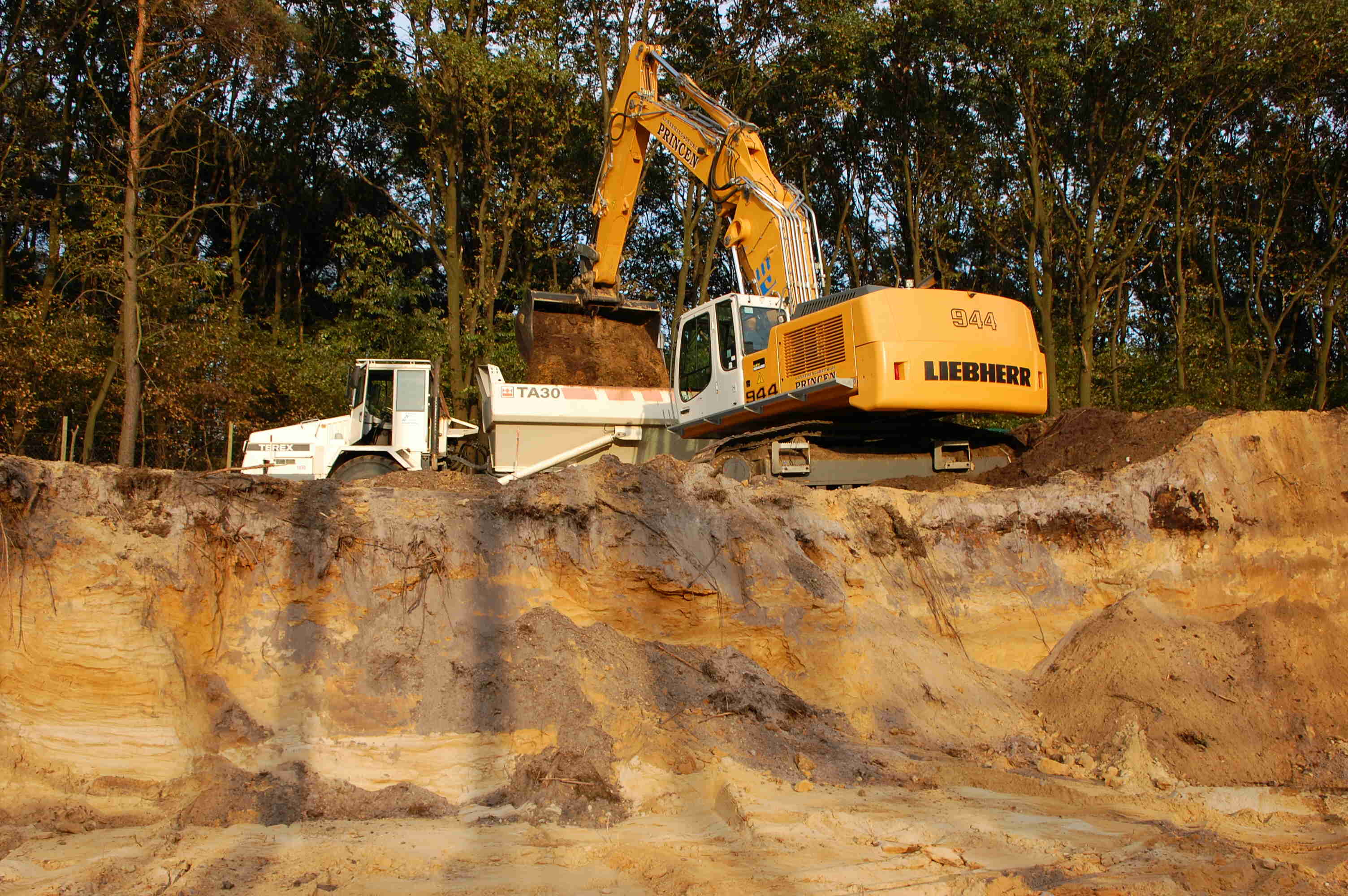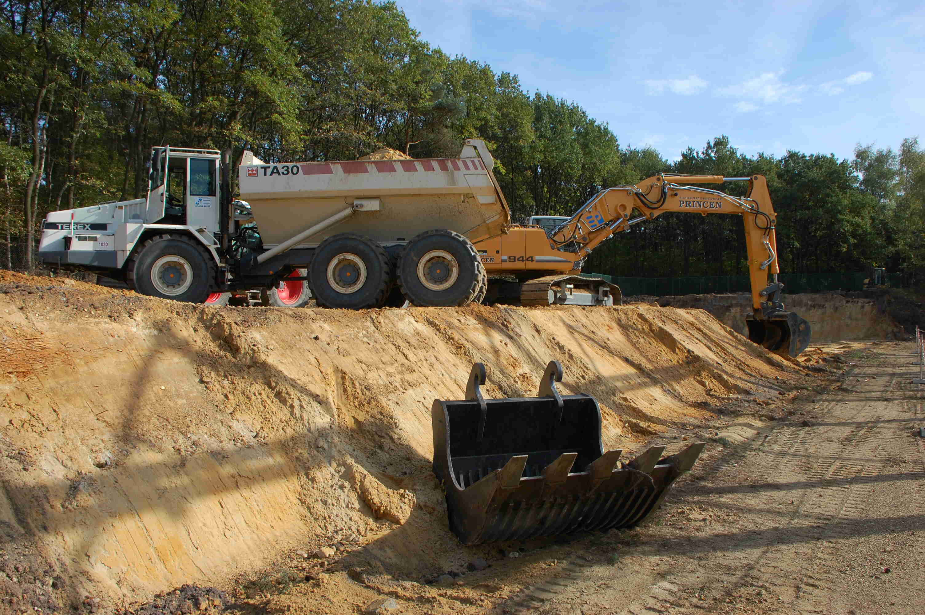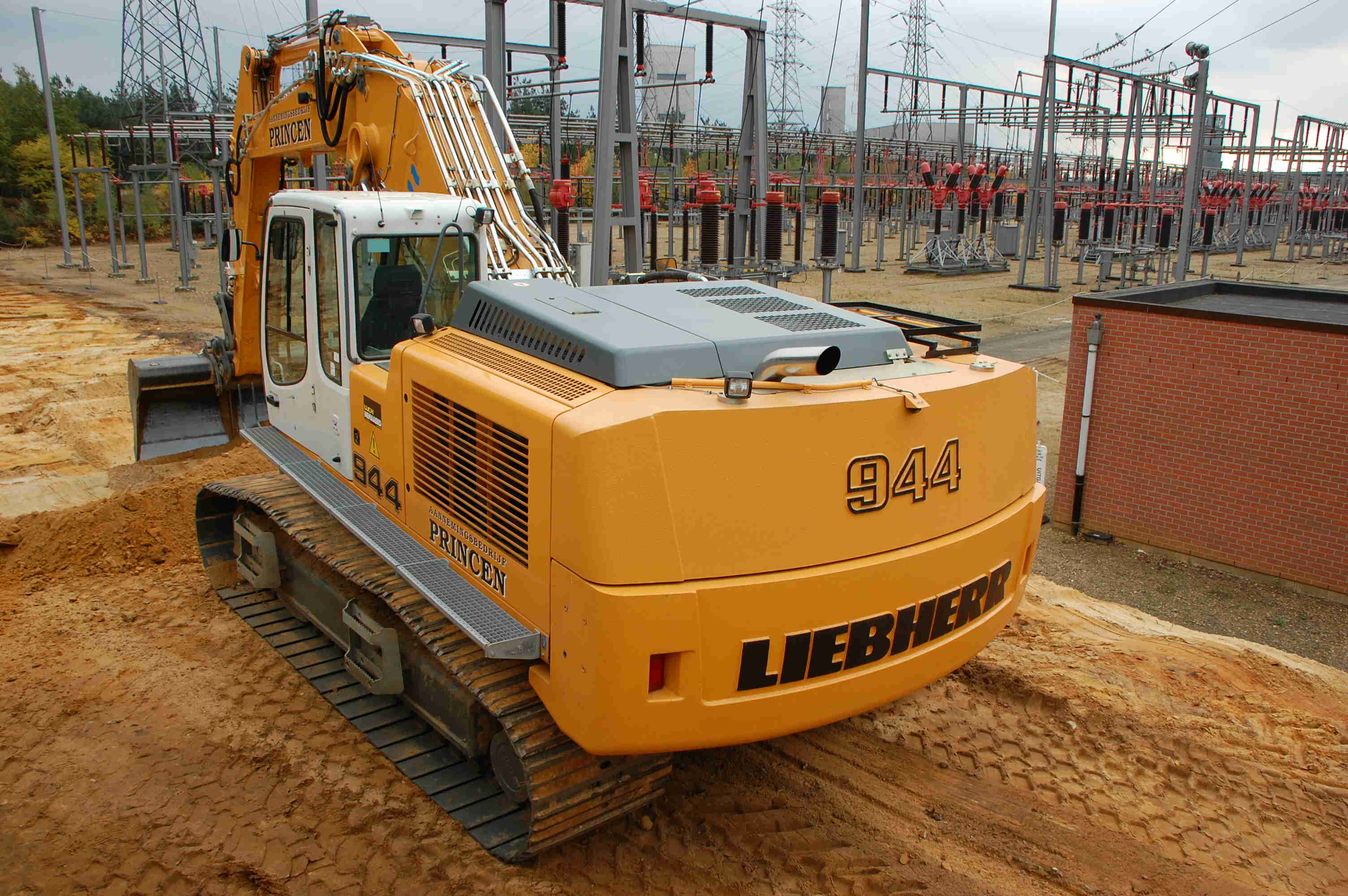 Groot grondverzet Om beide nieuwe velden ( extra en condensatoren) te realiseren diende er een massa grond verzet te worden. In totaal moest er zo'n 6300 kubieke meter zand verzet worden. Bovendien vond dit groot grondverzet plaats in een in dienst staande post van 150 000 volt. Om dit werk tot een goed einde te brengen hebben wij onze liebherr 944C 43 tons graafmachine ingezet voorzien van een graafbak van 3,6 kubieke meter. Om de grond af te voeren kwamen er een TEREX 30 tons knikdumper en een fendt 936 tractor met gronddumper aan te pas.
